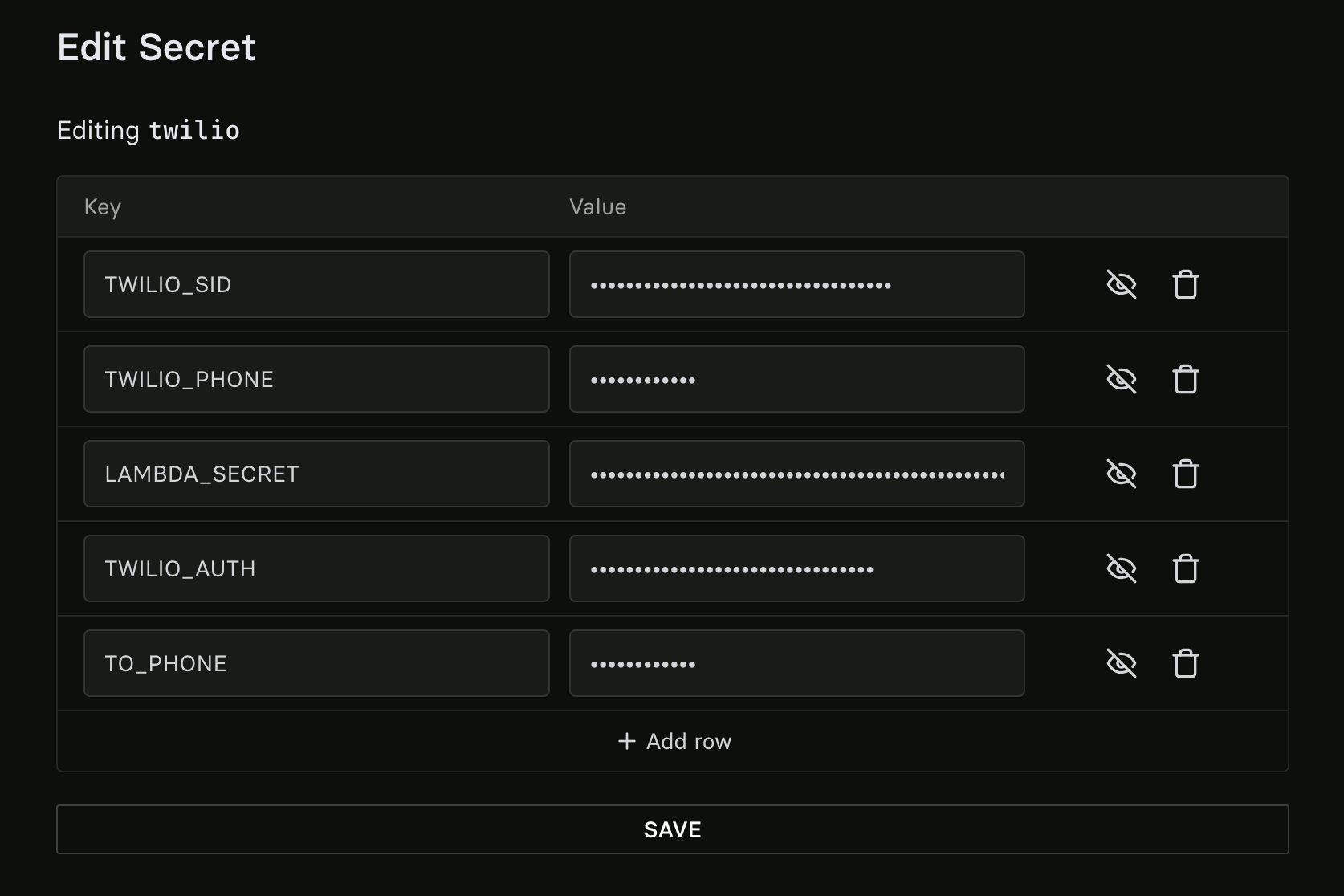 I’ve named my collection “twilio” and added the following environment variables: - TWILIO_SID: Twilio account identifier - TWILIO_AUTH: Your Twilio auth token - TWILIO_PHONE: Your Twilio phone number (Make sure to include the country code, e.g. +1 for US) - TO_PHONE: Your phone number you want to receive texts on (Make sure to include the country code, e.g. +1 for US) - LAMBDA_SECRET: Your Lambda Labs Cloud API Key